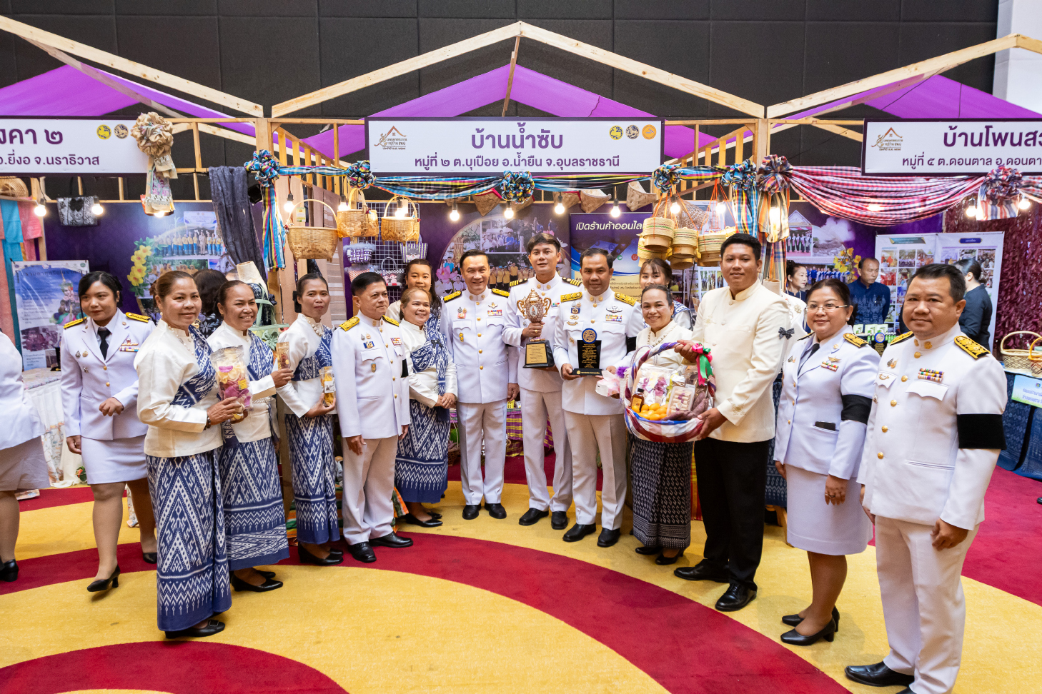 พร้อมด้วยโล่รางวัลสำหรับนายอำเภอผู้มีผลงานดีเด่นในการสนับสนุนหมู่บ้านจนได้รับรางวัลในครั้งนี้ นิทรรศการยอดเยี่ยม สัมผัสผลงาน “กม.” ทั่วไทย